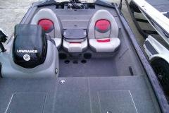 And a long list of value-packed features to enhance any and every fishing trip, including a Minn Kota® trolling motor with a recessed foot pedal (with tool and drink holders), a NEW console with a phone holder and full instrumentation, TWO aerated livewells, two fishing chairs and plenty of storage for all your gear, including a designated center rod locker for rods up to 8’ (2.44 m) long!
